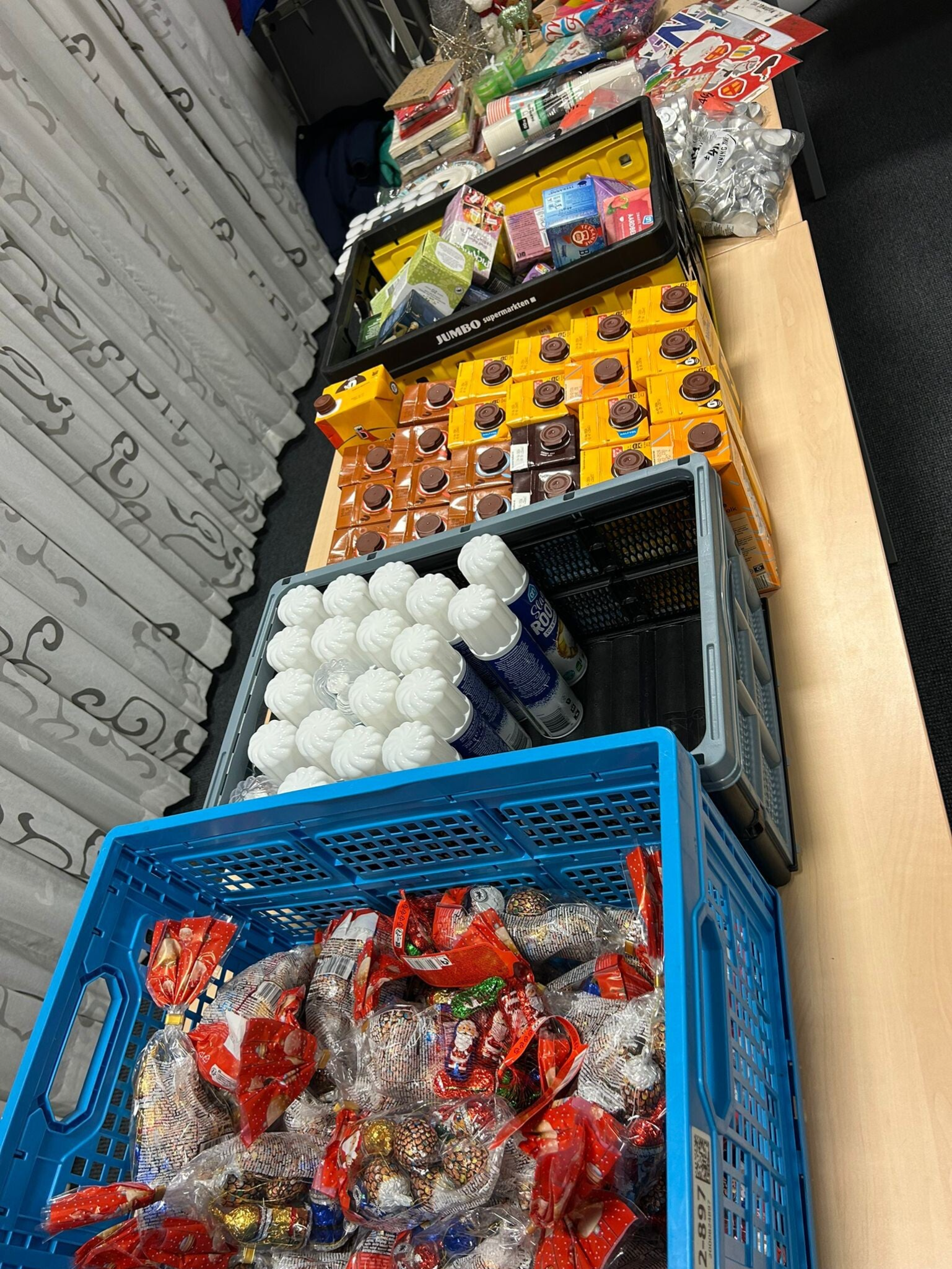 Op de uitdeelavond worden de cadeaus persoonlijk overhandigd aan de ouder of verzorger, niet aan het kind. We bieden daarbij inpakmateriaal aan zodat ouders het cadeau zelf kunnen inpakken – zo voelt het écht alsof zij hun kind iets geven. Een moment van trots, waardigheid en verbinding.